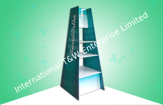 esposizione del cartone ondulato di 2-sided POP con gli scaffali ed i ganci del metallo per la vendita delle scarpe
