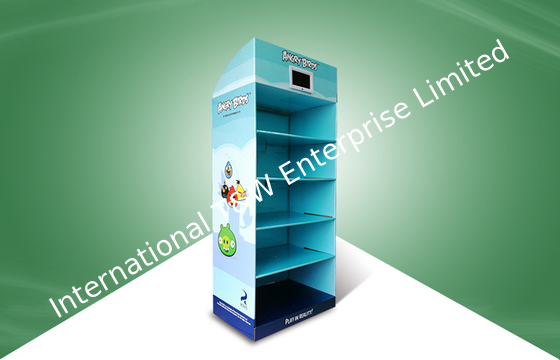 Cinque giocattoli dei banchi di mostra del cartone di schiocco dello scaffale riparati con il giocatore della TV