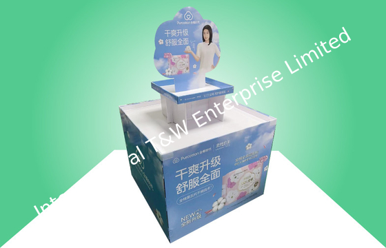 Espositore per pallet in cartone a tutto tondo per la promozione di assorbenti igienici con un design robusto