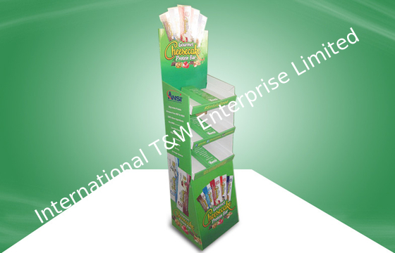 Esposizioni del cartone di posizione dello spuntino di promozione con tre scaffali per le vendite al dettaglio